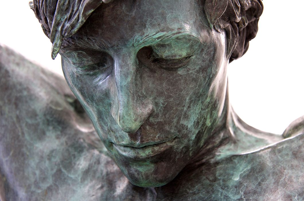 In ancient Greek myth and religion, Helios is the god and personification of the Sun. Working from the original small maquette made twenty years earlier and using the same model, the life size sculpture was completed and cast in 2020.