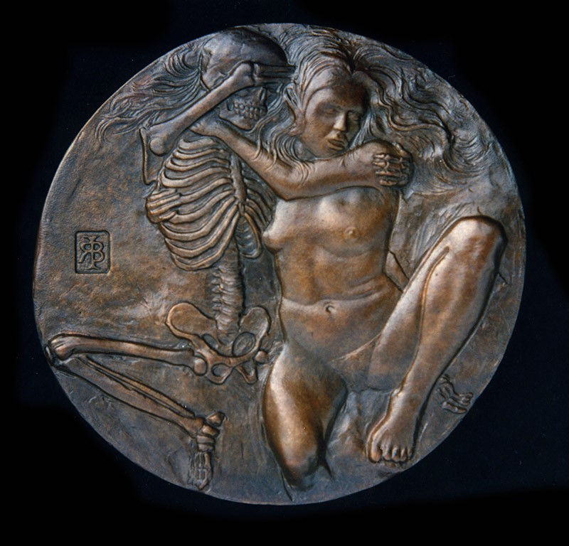 Death & the Maiden Death and the Maiden, a concept ultimately derived from the Medieval “Dance of Death” here updated in this medal. Details:Material: Bronze Size: 4.75" / 120 mm Edition: 5