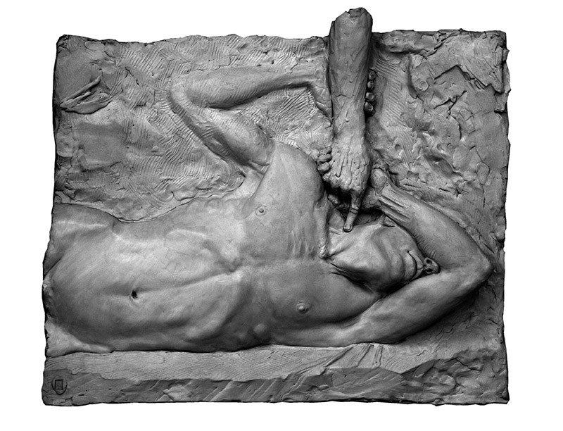 The Dream The somnolent figure wrestles with the hand of Hypnos, the God of Dreams. Details:Material: Clay Size: 1m x 0.7m / 39” x 27.5”