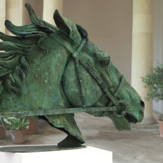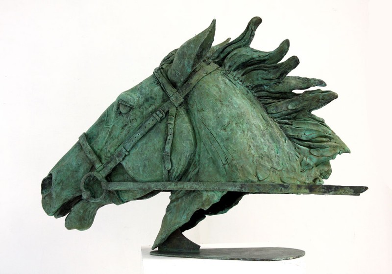 Equus II Study of a horse’s head capturing the energy and drama of the animal in motion. It was intended for a large-scale composition. Details:Material: Bronze Size: 90 cm / 36 Edition: 10
