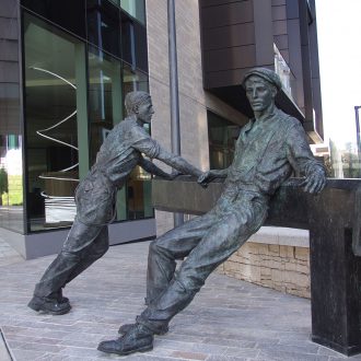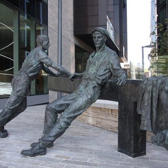 Commemorating the working people of Britain’s canals, this sculpture pays tribute to the history of 250 City Road. The basin was built in 1820 to serve the City of London and made an important contribution to the prosperity of London. This sculpture celebrates the toil of the men who worked tirelessly on the barges that arrived from across the country.