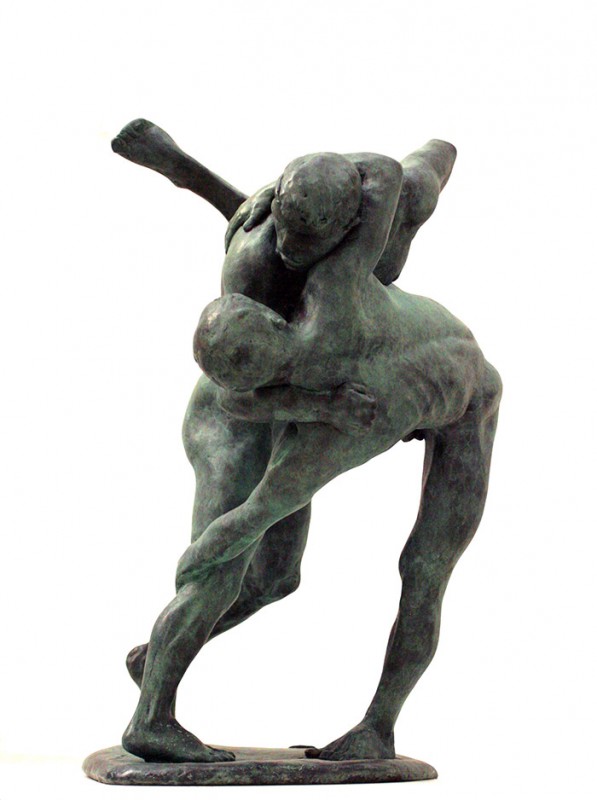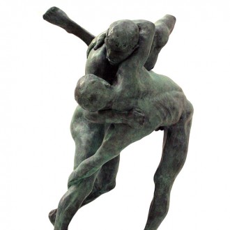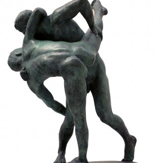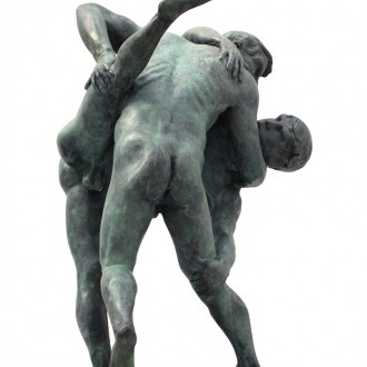 The subject of wrestling, like dance, allows figures to interact in dymanic and surprising way. Here two male figures spar with each other in a balletic manner.