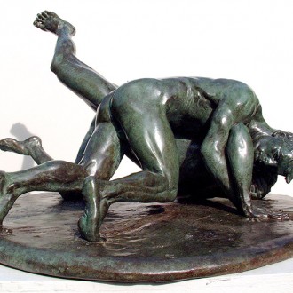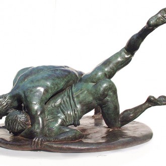Youthful Wrestlers Greco-Roman wrestling allows the sculptor to portray two athletes in a dynamic sequence that shows the grace and subtly of this classical sport. Details:Material: Bronze Size: 0.35m / 14in Edition: 10